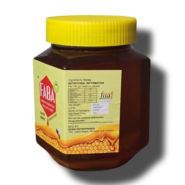 Saunf Faba Honey is a distinctive and naturally aromatic honey derived from the nectar of fennel flowers—commonly known as saunf in India. Fennel is a well-known culinary herb with a light, sweet, and licorice-like flavor, and this honey beautifully captures that essence in both taste and aroma.